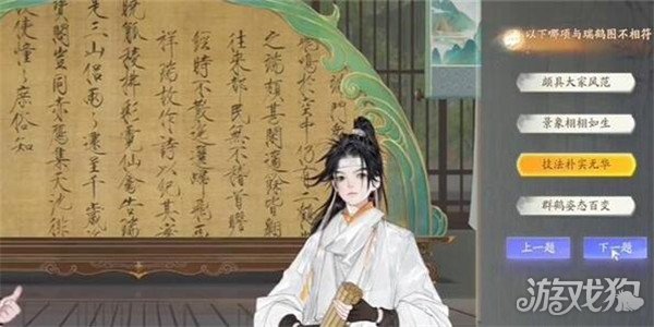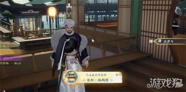 玩家需要前往无定坊的长庆楼,在这个地方找到一个叫做左君与的角色,随后和他进行对话,就可以进入到博物百科的瑞鹤图的答题界面了。