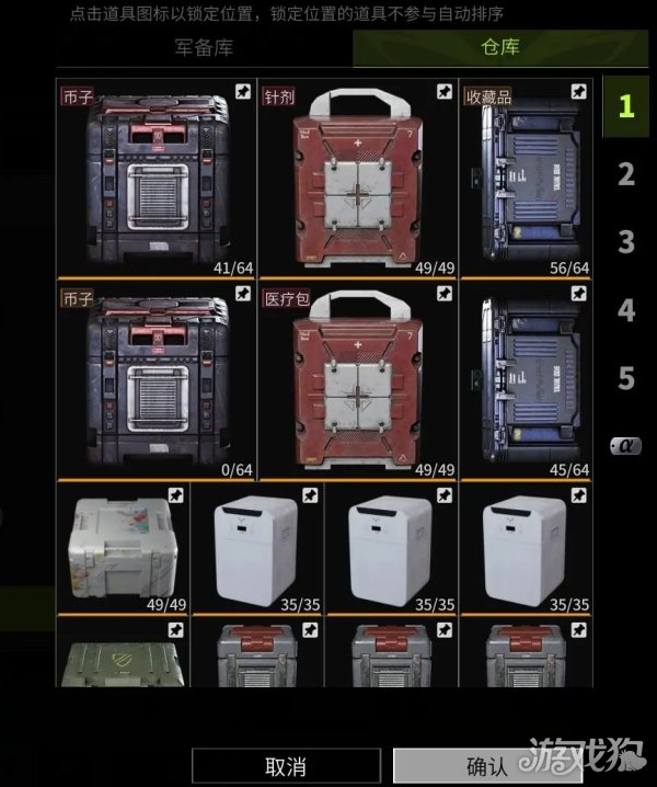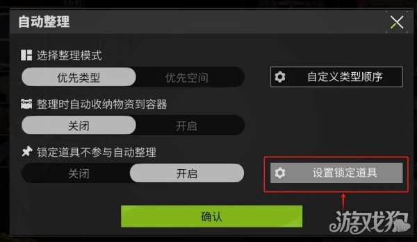 选中你的收纳箱,锁定的道具不再被自动整理排序,点击确认: