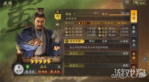 SP法正面板中的智统成长相较于老法正有了明显提升,具备了一个核心辅助的面板属性基础,兵种适性保持不变。