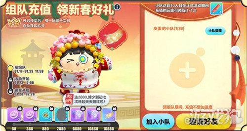 1、新春组队充值队伍上限为20个人,活动开启后充值金额都将记录在累计进度中。