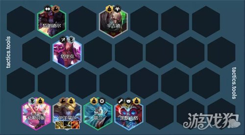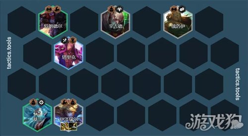 这套阵容核心是3赏金2格斗2狙神羁绊,前期利用3赏金猎人的经济迅速拉人口补充阵容强度,中后期可以连败拉8人口,肉装给俄洛伊打工,无尽可以给男枪打金币过渡,这也是一个比较不错的思路。