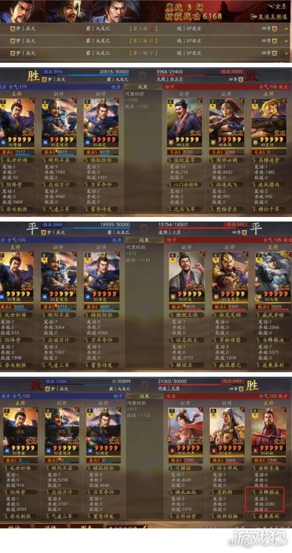 这一套目前不吃草船等核心战法,如果没有万军就满宠带非攻致胜,曹操带草船,在蓄势待发的加持下,作为共存的墩墩盾,效果非常棒。打同一个突击,墩墩带蓄势待发和不带的结果如下,对面还是奸雄无惧。