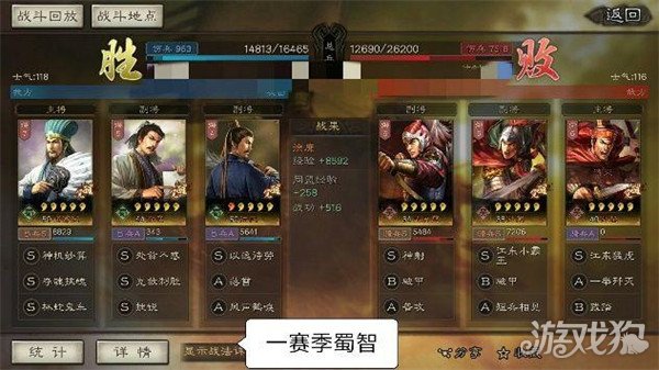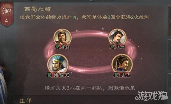 解读:这个组合是第一赛季比较好的组合,因为有西蜀之智这个羁绊的存在,可以让其中一人获得两次抵御,所以前期还是比较抗打的;而克敌制胜可以和徐庶的放毒战法配合,然后对敌人形成控制。杯蛇鬼车和以逸待劳保证队伍续航。