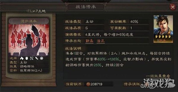 1、这个战法是目前唯一可传承带水攻的战法,可以和张角的五雷轰顶战法搭配使用造成控制。