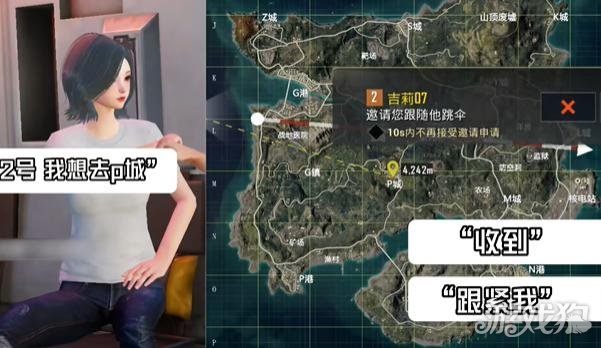 4、从跳伞开始,数字队友可以为玩家们提供帮助,点击跟随会带你到达目的地。