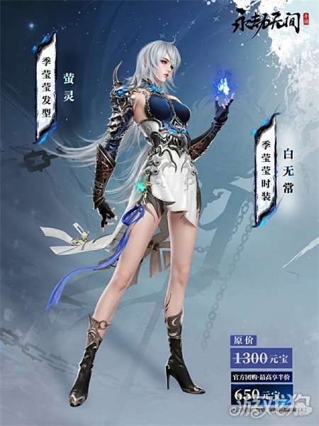 2、全新推出的季莹莹捆绑包【白无常捆绑包】现已上市。该捆绑包内含:季莹莹的极品时装【白无常】、季莹莹的极品发型【萤灵】,捆绑包的原价为1300元宝,现在特价仅需900元宝。