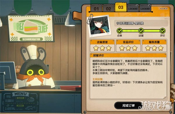 4、回到餐车,查看评价并完成订单。