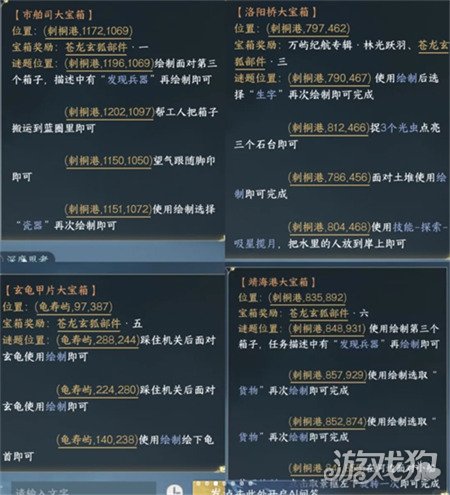龟寿屿(97,387)、刺桐港(835,892)4个大宝箱获取