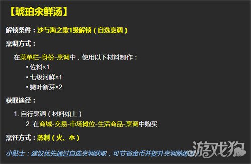 小贴士:建议优先通过自选烹调获取,可节省金币并提升烹调熟练度!