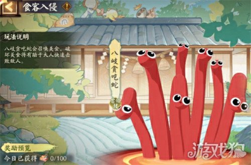 另一个有趣的玩法就是“食客入侵”,这里面,你将面对的是八岐贪吃蛇。它将召唤出一堆美味的食物来填饱自己的肚子,而每次它进食后,都会恢复大量的血量并提高减伤能力。在这个挑战中,你需要和八岐贪吃蛇展开激烈的对抗,并争取在规定时间内成功击败它。挑战成功后,你将能够获得50个零食奖励,而每日的零食上限是100个。这些零食将成为你投喂贪吃蛇们的关键,帮助它们不断变得更强。