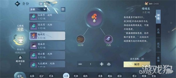 工艺1级配方:蓬瀛弈与绻绒花,每周各可制作5个,增加好感度效率极高,必须制作。