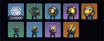 贝币×330000、低频啸叫声核×6、中频啸叫声核×6、高频啸叫声核×10、全频啸叫声核×12、声律种核×6、声律萌芽×8、声律新叶×6、声律花蕾×20