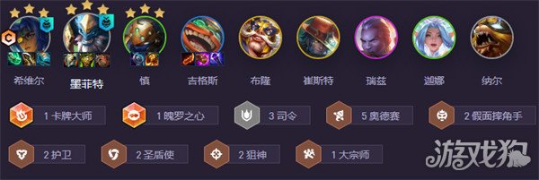 1卡牌大师、1魄罗之心、3司令、5奥德赛、2假面、2护卫、2圣盾使、2狙神、1大宗师