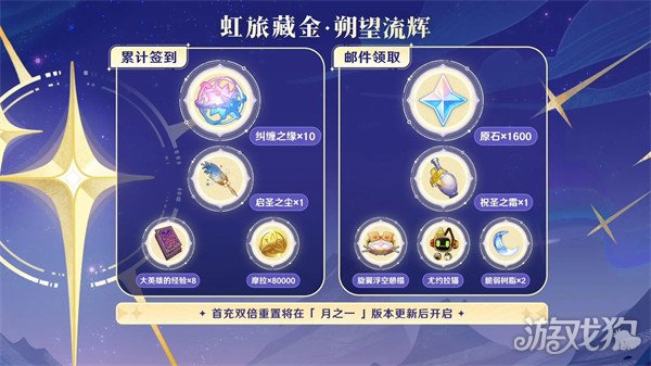 2、[空月之歌」版本期间,在[月之一」版本结束后完成注册的旅行者在后续版本中也能领取常驻五星角色。