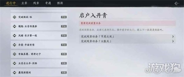 回到单人模式的秦川,任务栏会出现《行行迷旧垒》。