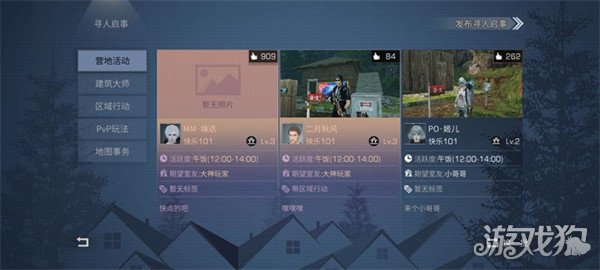 除了直接搜索添加外,玩家还可以通过游戏内的寻人启事功能来寻找好友。这个功能包含了营地活动、建筑大师、区域行动、PVP玩法以及地图事务等多个分类,玩家可以在这些分类中查看其他玩家发布的启示,通过添加对方为好友,不仅能结识新朋友,还能找到志同道合的游戏伙伴。