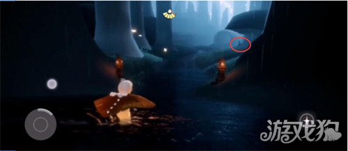可以看到这里有个树洞,这里有一个光之翼,出了树洞之后,往对面飞去,标记位置有第6个先祖;