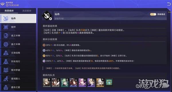 仙舟羁绊可让玩家召唤神君来打伤害,并且拥有仙舟羁绊的角色行动次数越多,神君出手的次数也会越频繁,尤其在组出7神君或搭配上景元的情况下,整个阵容的输出伤害会非常高。最重要的是,仙舟羁绊很好与其它羁绊搭配,不管是7仙舟4击破还是7仙舟3能量都有较高的强度。
