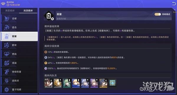 能量羁绊是很泛用的羁绊效果之一,它可令角色更频繁地开出大招,与任何羁绊搭配都有着极高的适配性。目前该羁绊效果最好的组合是6能量3昼之半神,通过无限给阿格莱雅回能来令她完成多动,配合上两双反重力的叠层效果和阿雅自身的速度转伤机制,可令阿雅打出极为夸张的伤害。