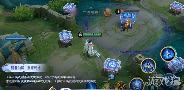 2、解读:先手开团1技能减速后接大招击飞,再用二段进场补控制,十分简单有效。