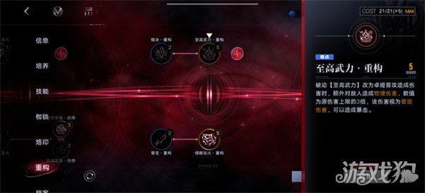阶段四:专烙升级成可用大招,能造成伤害,大招会根据使用的超限点点数提高伤害。而且视为普攻伤害,必定暴击