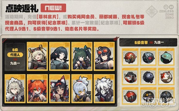 3、参与累充活动「点映返礼」更有S级代理人及S级音擎9选1!
