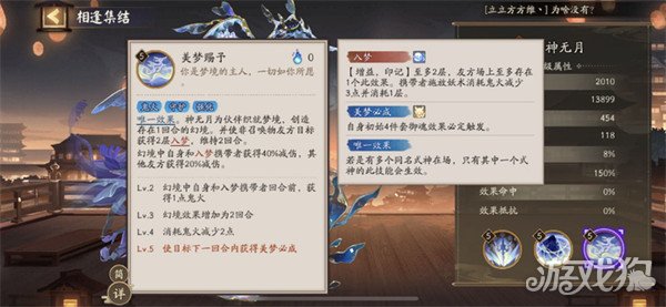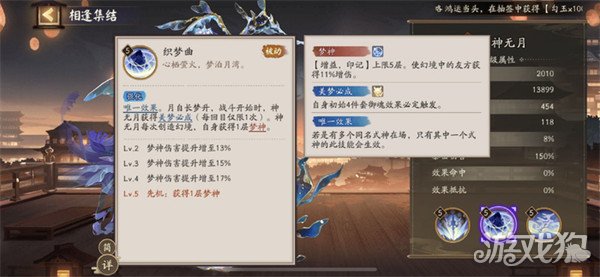 唯一效来。月自长梦升,战斗开始时,神无月获得美梦必成(每回目仅限1次)。神无月每次创造幻境,自身获得1层梦神。 Lv.2梦神伤害提升增至13%