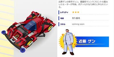 多少的玩家还记得这个看似上了年纪的大哥哥咬碎棒棒糖大喊“巨无霸,大钢牙,压碎它!”的话语呢?就是这个一个反派的人物和其充满攻击型的赛车也会加入到游戏之中。根据公开的资料显示:巨无霸赛车可能是作为一个十分难以操作型的赛车出现在游戏中,该赛车的特征就是耐久度高,不易磨损。其赛车的造型在整个赛车设计中都是十分霸道的,谁见了都想绕开它。