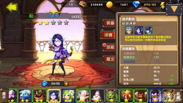 弓箭手在战场与月之女祭司和女猎手同时上阵时,就能触发战术技能致命诱惑,女猎手和弓箭手行动时可以选择跳过当前阶段,这样就能给隐身状态下的月之女祭司增加1次攻击机会。