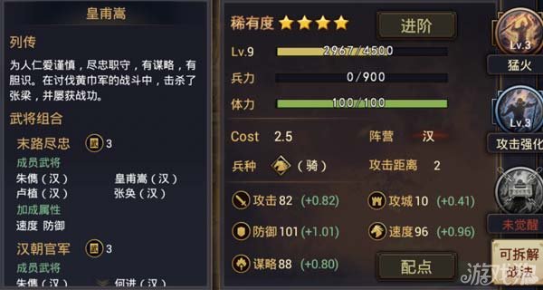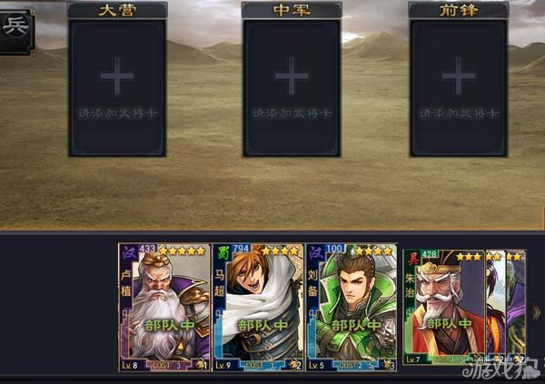 率土之滨中武将数不胜数,组合也是各有千秋。一个完美的搭配远远胜过一些五星战将的带领乌合之众,今天带给大家带来的就武将组合之末路尽忠。 组合人员: 皇甫嵩 朱儁 卢植 可以看到卢植的攻击距离只有1(前面说过攻击距离与敌方武将的关系,这里就不再说了),所以卢植只能放在前锋的位置;由于皇甫嵩的攻击距离是2,中军的位置最适合他;而朱儁的攻击距离是4,大营就非他莫属了。 值得一提的是,为了保证每个武将都能发挥作用,他们的位置一定不能错。以上就是今天的全部内容,希望能帮助到大家。