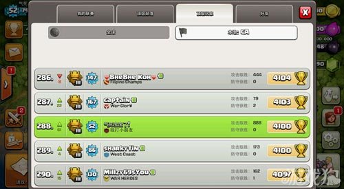 在这期间当然也摆过福利阵(摆不摆都是福利。。退部落然后新建部落起名叫1star90%Plz!希望有人发慈悲帮忙)但是最后发现并没有什么卵用。就这样上上下下将近十天,在经历了几次这样的起伏之后突然迎来了春天,连续被泰坦二以上搜到掉几杯,终于登上4100。