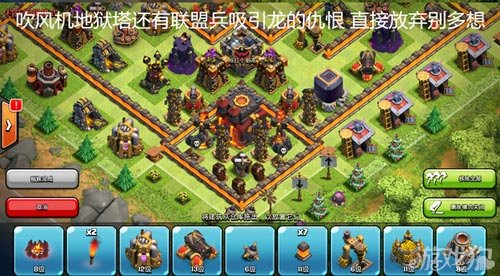 四.九本偏置本:这种大本围在村庄城墙的一边,附近有电塔气球骷髅吹风机等等杂物。如果带着满营兵力和满药水也可以打,不过这时候就要权衡一下收益问题了,你要问问你自己这个九本有多少杯可以拿,值不值得你倾尽所有兵力去做。