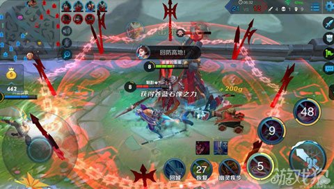 吕布的大招范围很广,而且可以远距离释放,不过这样的话,可能因为屏幕大小的原因,可能释放时都看不到范围内敌人的情况,所以一定要结合着小地图来放大招。看到小地图上敌方头像扎堆的敌方,估算好距离,然后向那个区域放大招。在战场上,如果是自动简易施法方式,可能吕布的大招命中的敌人也有限,所以建议使用轮盘施法方式,这样就可以很方便地选择自己需要放大招的位置了。