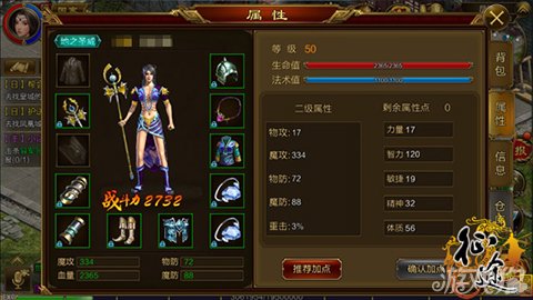 如果到了相应等级,战力偏低的话怎么办呢?最直观也最简单的方法,换装备。一整套绿装激活地之圣威,也可以是装备上的精益求精,制作更好属性的装备,把强化、精细的装备换成无暇、完美的装备;还可以镶嵌魂魄石,50级的时候最高可以镶嵌3级魂魄石,60级的时候可以镶嵌4级的;除了更换装备和魂魄石,还可以给装备升星,能大大提高战力。除了折腾装备以外,购买时装增加属性也是一个不错的方法。