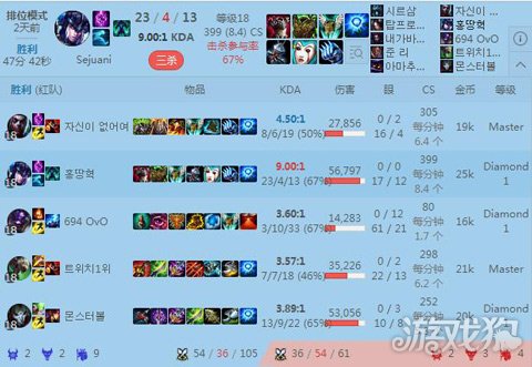 如果在中路对线的是AD刺客,那可让猪妹有了非常良好的发育环境,猪妹因为有被动的存在,在前期根本不虚大部分中单AD刺客英雄,不要盲目冲塔或者被抓那就可以进行优势换血,进行压制,而后期的团战也非常有利,刺客前期发育不好再加上你们队里实行的多保少战术,接近了脆皮又怎么样。
