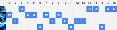 加点解析:主W副E,这里不用多说,一级的时候可以选择点一个E技能,方便一级团控制,与前期的补刀,W技能是猪妹主要的伤害性技能,他能极大程度提升猪妹的爆发,清兵什么的也全靠它,E技能补后续伤害,Q技能作为一个位移突进技能在前期加一点就好。