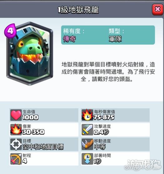 其实地狱龙这货你要是和地狱塔比,你就看出好处了~4费,空中单位,能移动,锁定目标快~非要这货去摸塔,我只能说电法、冰法、公主、矿工这几个没输出环境被抓tm一样惨。解天狗或者跟着天狗输出还是很好用的,本身也不是冲塔的货,很需要输出环境而已。
