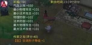这里顺便介绍下一个有意思的效果,当你拥有用6星笔开光的6星及以上传家宝,或者6条词条及以上的低星传家宝。在每天家园传家宝界面,点击祈愿的时候,前三次祈福有几率出现向天借命这个额外属性,效果是全技能+1。(家园气数只影响词条属性,和借命无关)所以大家买笔的时候注意下:哪怕是1级1星笔,只要有6个词条。属性再差也是有用的!(平民可以考虑下哦)