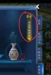 在博古架上选中传家宝,点击“祈愿”即可进入祈愿界面。