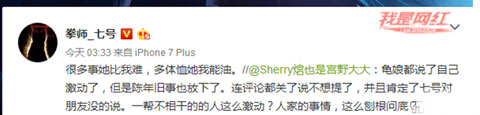 最后七号还是在微博表示“很多事她比我难,多体恤她我能油。”