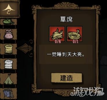 饥荒快速跳过夜晚的方法,睡一觉就好。饥荒的夜晚是漫长的,如何在不使用曼德拉草的情况下跳过夜晚呢,有一个非常简单的小道具可以帮助你达成理想,让我们一起来看看跳过夜晚的攻略吧。 六个干草加一个草绳制作草席。 制作完成后在夜晚点击使用,一次性道具使用后消失,但你已经跳过了夜晚呀。