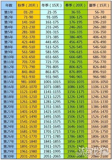 饥荒季节天数一览你知道每个季节分别多少天吗。饥荒的游戏内有四个季节,分别对应着一些BOSS和自然灾害,饥荒季节天数一览你知道每个季节分别多少天吗。 如图,第一年开始往上累积,这张表格是基于秋天开局的基础上来算的, 如果你的季节开局不同,或者设置了长秋季之类的,那么可能需要你自己掰手指头算一算了。