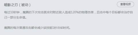 被动技能解析:每过10秒梦魇的下一次攻击就能造成120%的物理伤害,你可以理解撑1.2倍暴击,但又有所区别,这个伤害也可以被无尽所加强。除此之外这一次平A是范围伤害,每击中一个单位都可以治疗自己的生命,并且梦魇的普攻可以减少被动1秒的冷却时间。前期可以先利用Q技能的攻击加成,然后普攻最大化提高打野效率。