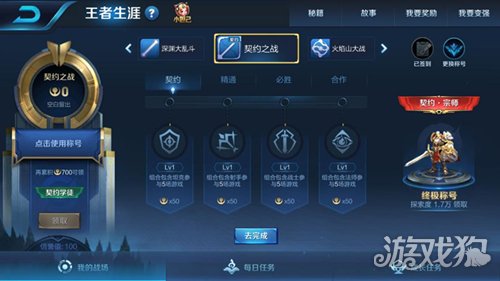 契约之战等级的划分从下往上分别是契约学徒、契约学士、契约修士、契约大师以及最后的契约·宗师,在这之中,我们能够看到在契约之战当中能够获得的最高荣耀就是契约·宗师这个称号,也更能体会到在这其中的资历和对契约之战这个模式自己的经验水平。让我们在看到第一眼之时,心里都会有那么一分安详在里面。