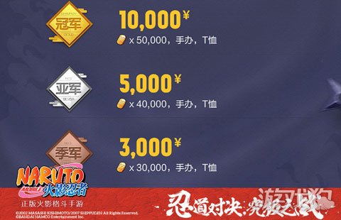 同时,所有前往现场参赛的选手人人皆可获得珍贵火影忍者正版手办与限量实物周边,同时现场抽取幸运玩家赠予S级完整忍者及火影忍者原著配音老师们亲笔签名海报,为自己荣耀加冕!