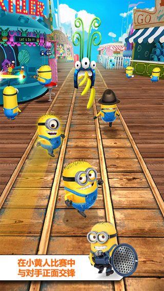 小黄人快跑ipad版精彩的跑酷模式开启,现在的你会是哪个小人呢,选择自己的角色开始奔跑吧,游戏中的你需要穿越在一个个的实验室中,你们都有看过这部作品吧,真实的还原,场景中的一切都能唤起你的记忆。变身成为邪恶的妖魔,变大后的你可是无敌的哦,谁都不能阻止你,踩倒小小的黄人们,得到大量的奖励,收集最多的香蕉,它们是你买东西的关键。
