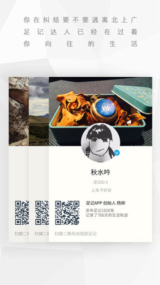 足记iPhone版是一款文艺与生活相结合的图文手机软件,你可以随时的去分享你身边的所发生的好玩的事情,利用它自带的拍照的功能,可以为你四种不同的模式让你去随意的选择,普通、宽屏、画中画、对比模式,无论是哪种模式都是可以让可以拍出的图片像大片一样的情调的,每个人都可以是导演,每天的生活都是一场电影。