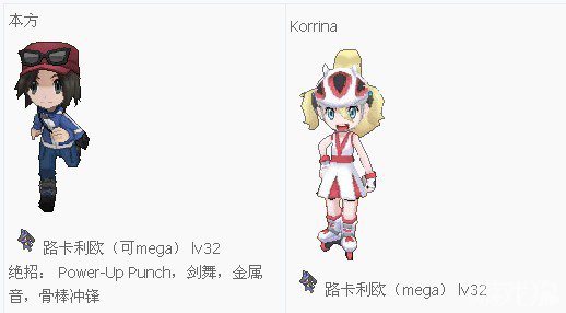 往左上方走就会看到耀斑团成员,追上去发现不见了,只好返回来往城市右边走,又遇到了那个带着路卡利欧的馆主Korrina,并触发了战斗(非馆主战)