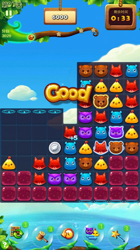 在时间关卡中骂。我们也是有消除目标的,但是在消除的时候,没有时间的限制,只要在规定的时间之内不断地消除就可以了。