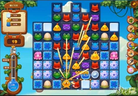 染色宝宝还可以自己消除。与周边其他元素的动物交换之后,所有与交换元素相同的动物,都会被染色。就像是黄色染色宝宝与红色元素交换。这样所有的红色元素都会变成黄色的动物。是不是很棒呢,动物颜色变化,是可以改变我们关卡的布局的。